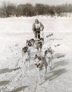 with Art Allen Thanks to Denny Hitchcock for providing this update on Art. I wanted to give you an update on Art Allen. Some of you may know that Art was diagnosed with Parkinson’s Disease a few years ago. He also has diabetes and depression. My wife and I visited him recently and Merv Hilpipre was there a short time ago. He was very happy to see us and we, of course, enjoyed the visit very much, as well. I am certain Art would love to hear from all his mushing friends. That time of his life was a joy for him and, certainly, a joy for all of us who are friends and benefited from his help and vast knowledge of our sport. As the first professional dog driver in the country, he paved the way for all those who followed. He was there in 1963 when racing started in Minnesota and that’s when many of us began our friendship with Art and began learning from him. He was also there when we started NSSDC and ISDRA. A non-mushing friend accompanied me to the 2nd Ely race in 1971. On the way home he said “I really like your friend Art. He’s like the Will Rogers of the mushers. He doesn’t say much, but when he does, everyone listens.” How astute! Art would love to hear from you – a card, a phone call or a visit. He will appreciate whatever you are able to do. My best to you all. Art's new contact information as of 12/22/09: Colonial Manor of Amana Editor's note: You can also email your message for Art to Denny, he will print them out and take them to Art. Denny's email is dpjh@circa21.com We invite anyone who has an "Art Allen" story or photo to share it with us on this page. You can Email us Submitted by Kevin and Diane Johnston, 10/8/09 Art was one of the few dog men I've met that had a gift for training dogs to perform at a level beyond most peoples expectations. We were so fortunate to have had the opportunity to have Art and Judy Allen as our friends, mentors and part of our lives and our children's lives through out the years. Art and Judy sold us our first sled dog and then took us out and taught us everything about dogs from a to z and his knowledge was endless. We trained together for years and traveled to races together sharing rooms, experiences and they introduced us to the many wonderful friends we had on the trails. Wherever we went people would come to Art with training and race strategy questions and Art would always introduce us to his many friends. Many times I was told "if I could only train with one person it would be Art Allen, a sled dog champion, legend and friend to all. Submitted by Max Hinkle, 9/14/09 Art is a very good friend of mine....I lived about six miles from him in Iowa. He was a great source of info when I got started. After a number of years training with him at Greencastle wilderness area, one day when we were both done training, had all our dogs loaded and ready to go home....he asked me how it was going....and I started bitching about the rain, mud just about everything crappy.....Art turned to me and said "Max, just remember if your pissed about all this....can you imagine how your team of eighteen is feeling about now?" In other words your team has feelings also....I'll remember his words for the rest of my life. Take care my good friend, my thoughts are with you. Max Hinkle, Swisher, Iowa now in Grand Marais, Minnesota Submitted by Judy Bergemann, 9/14/09 I'll start with my "first" Art Allen story: I bought my first “professional” sled dog from Art and