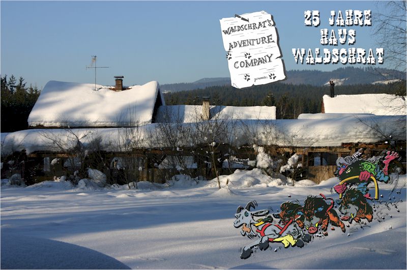 25 years Waldschrat´s Adventure Company, ~Click on any photo for a larger view~ Photos and text by Thomas Gut 21st of October 1988, Thomas Gut signed the contract to buy a little farm in the Bavarian Wood, Germany, southeast part of Bavaria. This marks the end of his career as an chemistry engineer. He developed Crash Pad Sheets for the car industry at Kaliko GmbH. Starting with a traditional Siberian Husky, his dogs has arrived the number of six, which was too much for the little house he lived in the little town of Eislingen, with no garden, just roads and houses around. The farm he bought is situated in a nice clearing in the Bavarian Wood, famous for the cold climate. Six months winter and six months cold a saying tells.