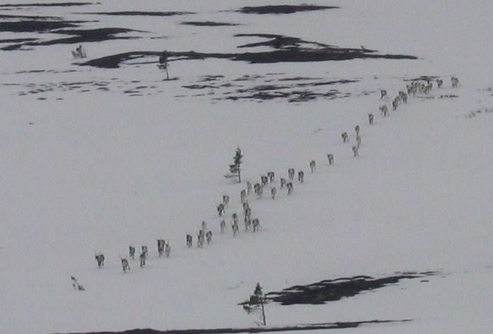kick it could have ended in a disaster. It was beautiful but I don't want to meet them like this again! It was maybe 60 -70 in the herd. I dropped my gloves and got the camera out and prayed that I could keep the sled still