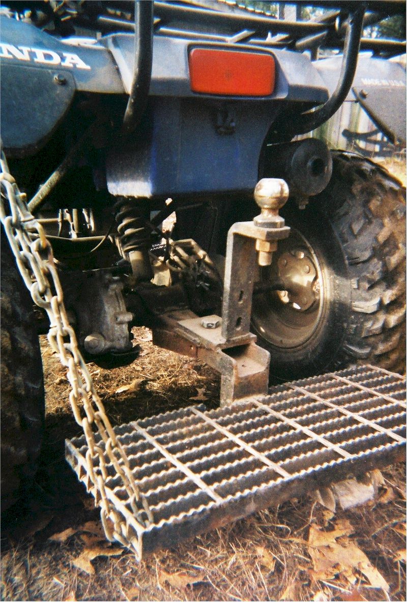 We modified our quad with a platform at the back for the second person to stand on instead of both being seated on the quad. Works great for training youngsters - easy to hop off and correct something and hop back on again. There's a handlebar section attached to the top of the back rack for hanging on to. Provided by Linda Lange, Michigan, 11/2/06 Editors Note: Please be aware of the tendency of some ATVs to become unstable with extra weight in the rear. Know your machine and how it responds to this type of load. s/Judy Bergemann