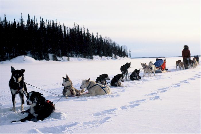 Lake, Saskatchewan with an ever increasing number of sled dogs. I wonder about that