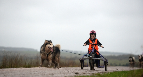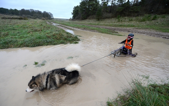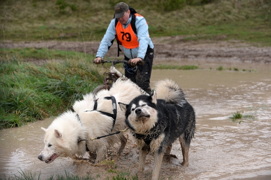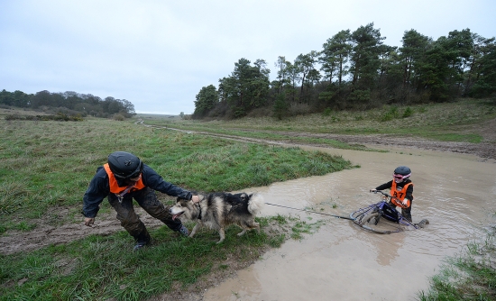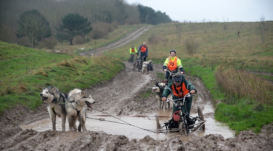 ‘The dogs do genuinely enjoy working in harness. They tend to get very excited and at times noisy and just want to go. It’s the stopping that can be fun. It is however, about knowing your dogs and their capabilities. You work as a team, competitor and dog alike’. The undoubted star of the show was Wiltshire schoolgirl Isabelle Thompson who became the youngest ‘musher’ in the country to complete a sled-dog trek in the UK. Isabelle (aged 8), a pupil at St Michaels Primary School in Figheldean, competed alongside the family’s Alaskan Malamute, Dushka (aged 5). Also competing and watching over her daughter, was her Mother, Kelly Thompson (aged 36). She competed with two other of the family dog’s, Tinker (aged 3) and Titan (aged 4), both Alaskan Malamutes. The Mother and Daughter combination and their canine team-mates, completed the 7.5 mile cross country course on both days. Isabelle said, ‘The best parts were going down the hills and the big puddles we went through, apart from getting water in my wellies. Dushka pulled well all the way around the course’. Her Mother, Kelly stated, ‘It was really good fun and great to go around the route with my Daughter. I’m very proud of her achievement’.