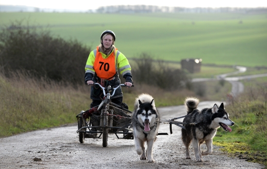 The event organiser, John Binding said, ‘Salisbury Plain is an ideal venue with its wide range of terrain and conditions. It is the perfect place to learn about the dogs’ abilities and to work together as a team. The weather once more was ideal for our canine competitors’. ‘The purpose of the Trek which is not timed is to allow competitors who go out in groups, the opportunity to work their dogs in harness over longer distances which is really what they are bred to do. There were a choice of four distances – 7.5, 13, 16.5 or 25 miles. There was also a night run which was set to be a minimum of 10 miles. Potentially teams could cover a minimum of 60 miles over the two days’. ‘There were different team sizes ranging from one to eight dogs. We use a three-wheeled cart called a Rig which the team of harnessed dogs is connected to using a gang line and pull from the front. The only control you have over them is by voice commands. Purpose built scooters and mountain bikes can also be used for one-dog teams, which they pull from the front’.