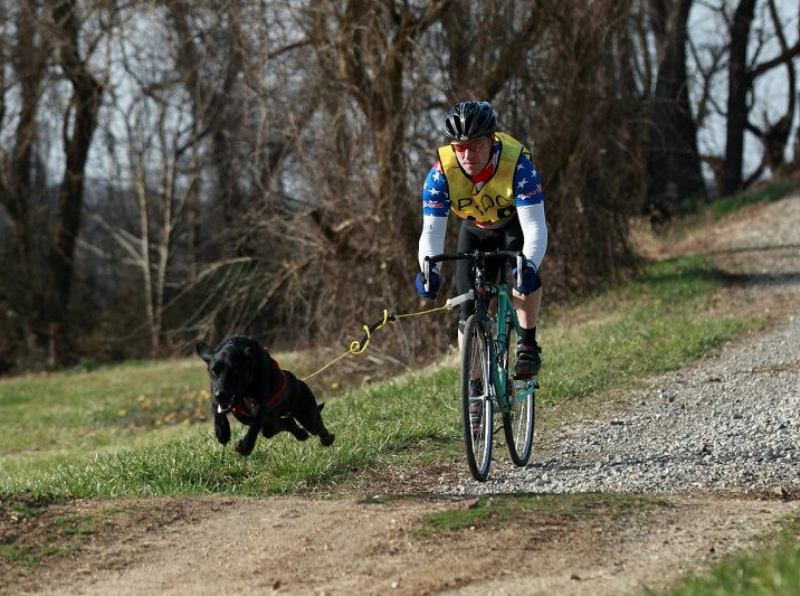 Scott Farmer's Comet "flying" in 1 Dog Bikejoring, setting a new one dog